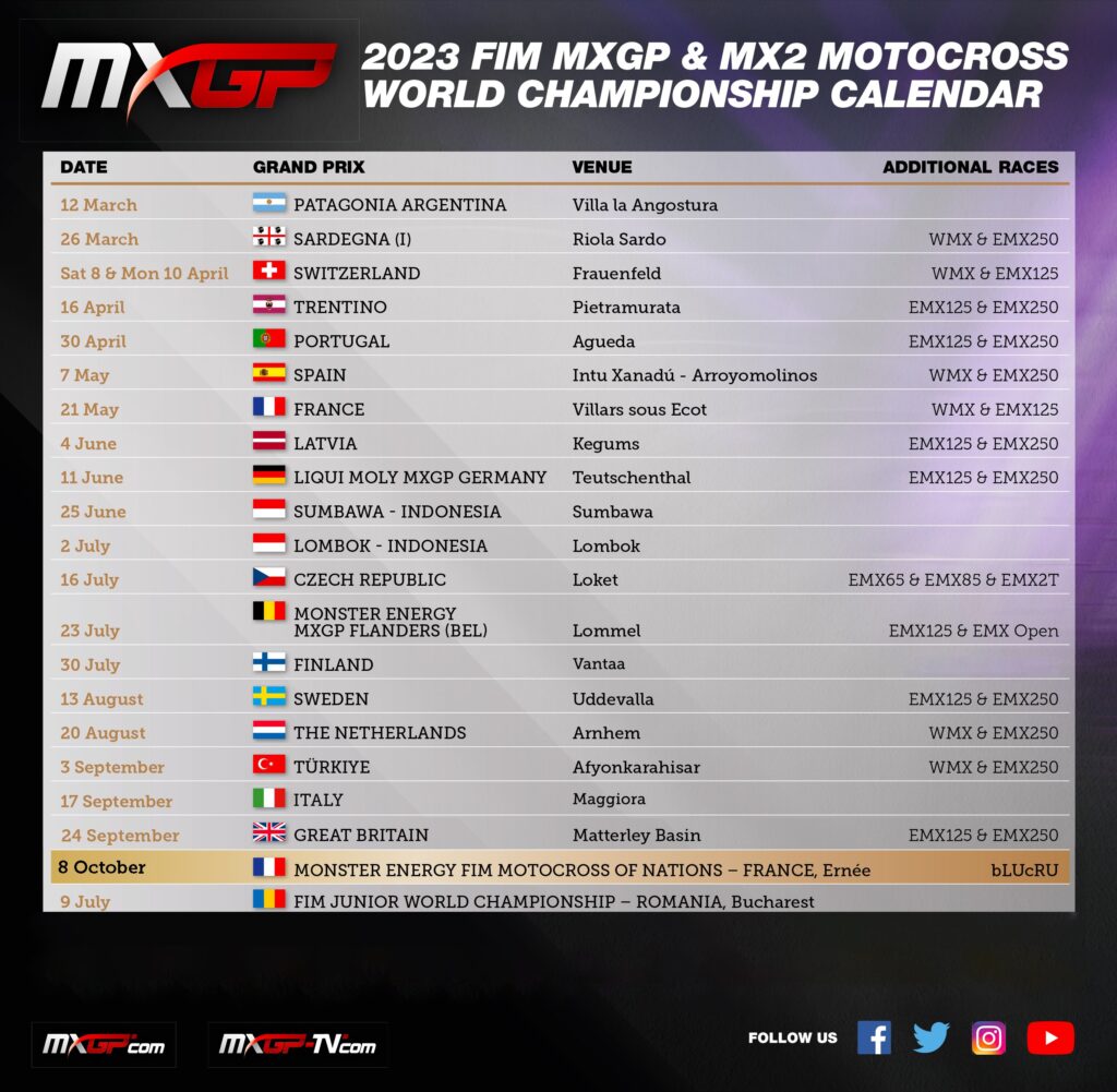 Infront Moto Racing would like to share an update to the 2023 racing Calendar of the FIM Motocross World Championship.