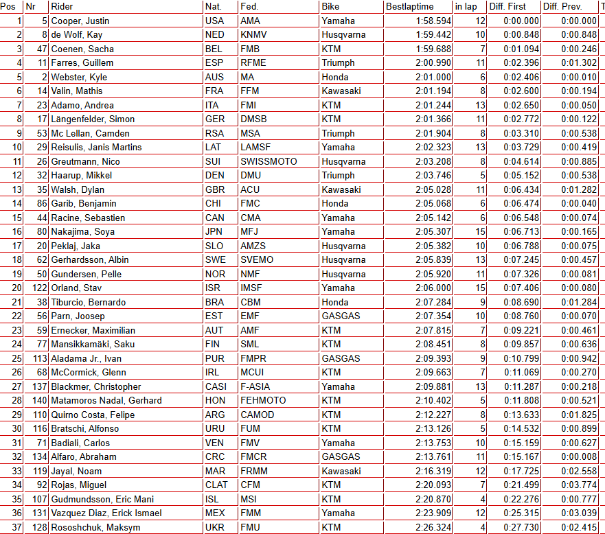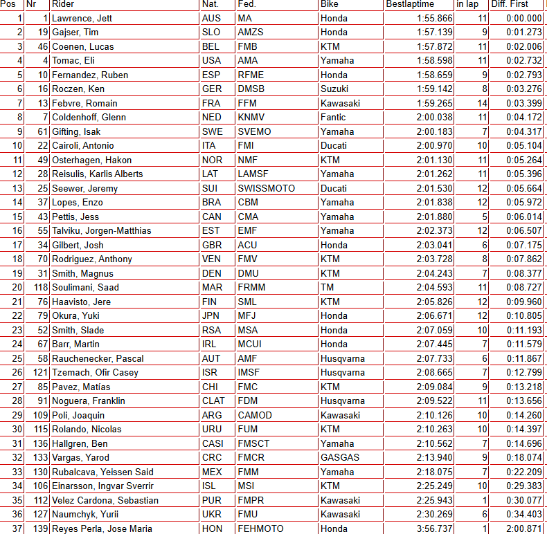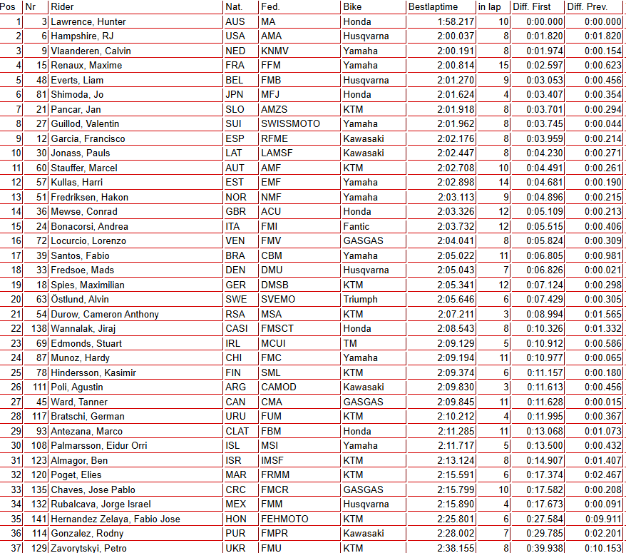 In this morning’s free practice sessions, Jett Lawrence (MXGP), Justin Cooper (MX2), and Hunter Lawrence (Open) topped the timesheets in their respective classes.