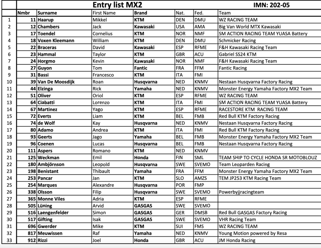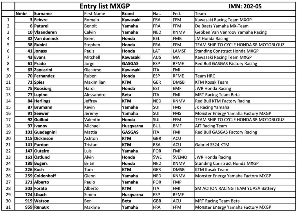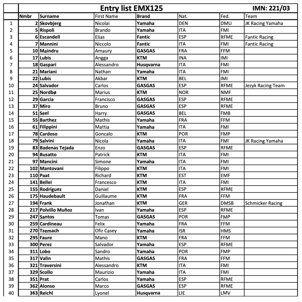 En MXGP destaca el nombre de Simeó Ubach entre los ya habituales Jorge Prado y Rubén Fernández.