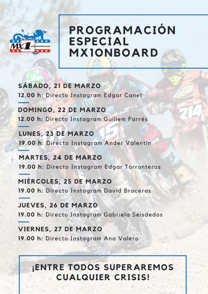 Seguimos con nuestra programación MX1Onboard vs Coronavirus. Si hoy contamos con Rubén Fernández en directo en nuestra cuenta de Instagram a partir de las 19.00 horas… la serie sigue la semana que viene.