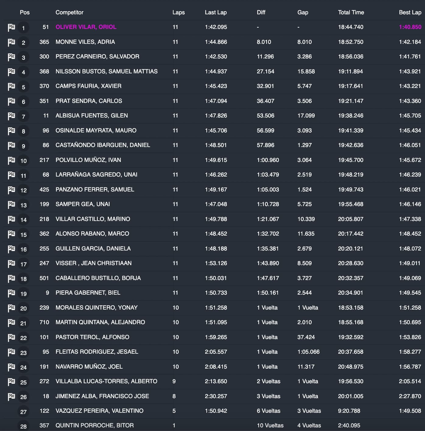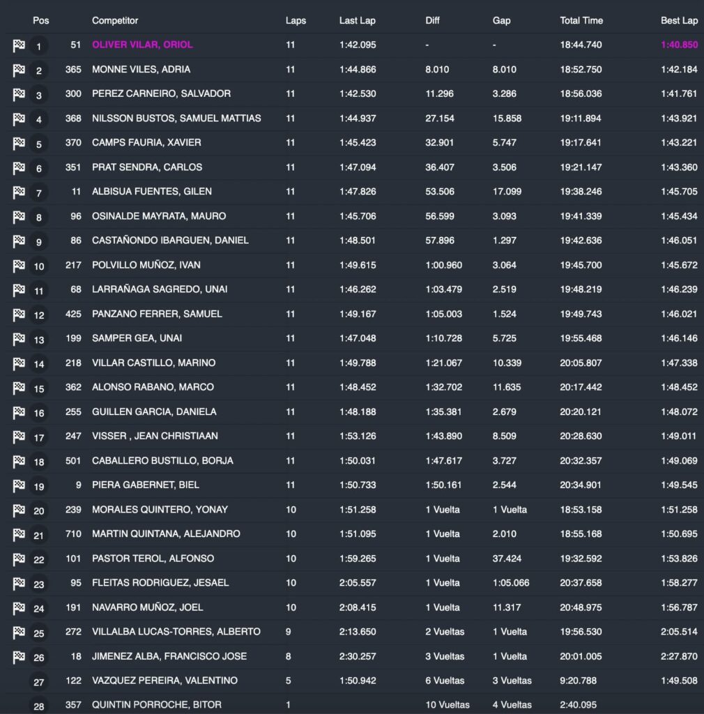 No ha habido ningún cambio en los pilotos que han cerrado el Top 5 desde la primera vuelta. Así, Salvador Pérez ha sido tercero, Samuel Nilsson cuarto y Xavi Camps, quinto.