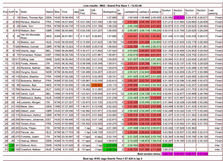 De hecho, el de Husqvarna ya veía com era el francés de KTM Factory Racing el que se llevaba el triunfo, aunque Jago Geerts ha cometido otro error que ha acabado en caída cuando luchaba por la primera plaza lo que ha propiciado que el danés superara la bandera a cuadros segundo.