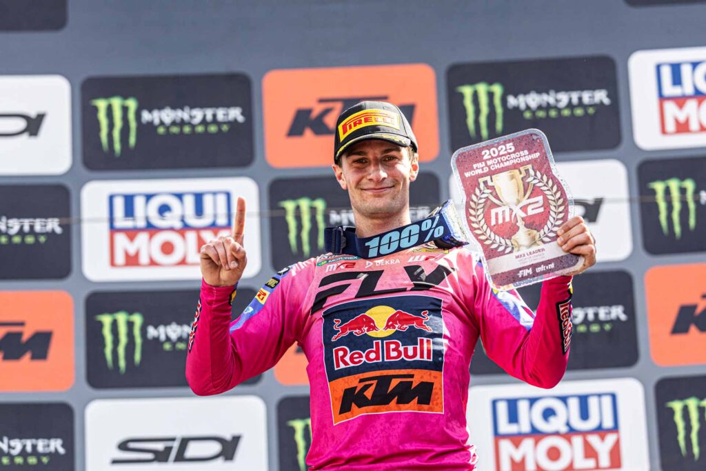Desde que tomó el liderato en Portugal, Romain Febvre (Kawasaki KRT) ha encadenado un gran momento de forma, ganando los dos últimos Grandes Premios, incluyendo una memorable victoria frente a su público en Ernée. Sin embargo, Lucas Coenen (Red Bull KTM) continúa ejerciendo presión, aunque la ventaja del francés ya asciende a 47 puntos.