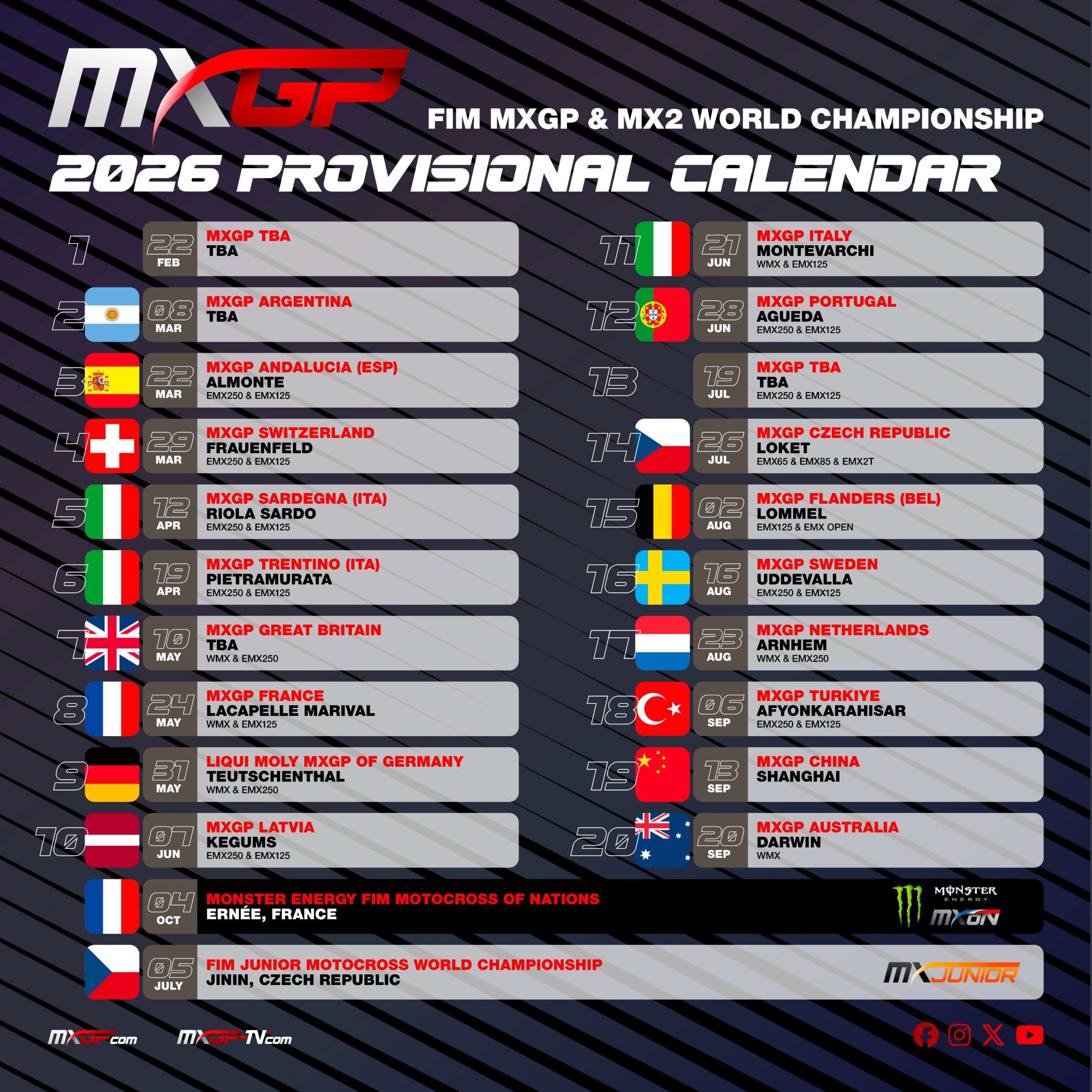 2026 MXGP PROVISIONAL CALENDAR