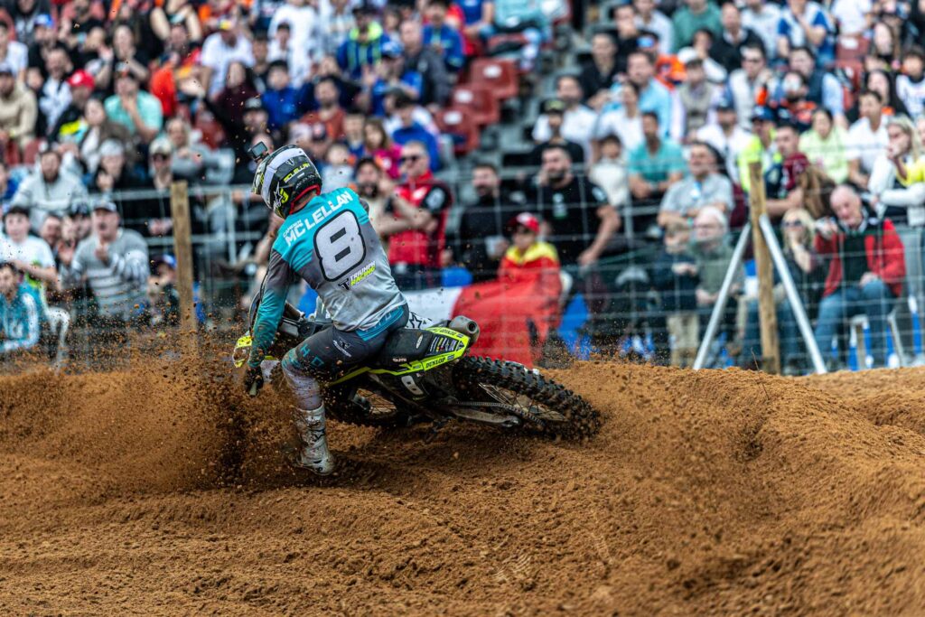 Camden McLellan claimed his first career MX2 overall victory and Triumph’s maiden win in the category, securing the top step of the podium ahead of Simon Längenfelder (3-3) and Sacha Coenen, who rebounded from a race-one crash to finish third overall.