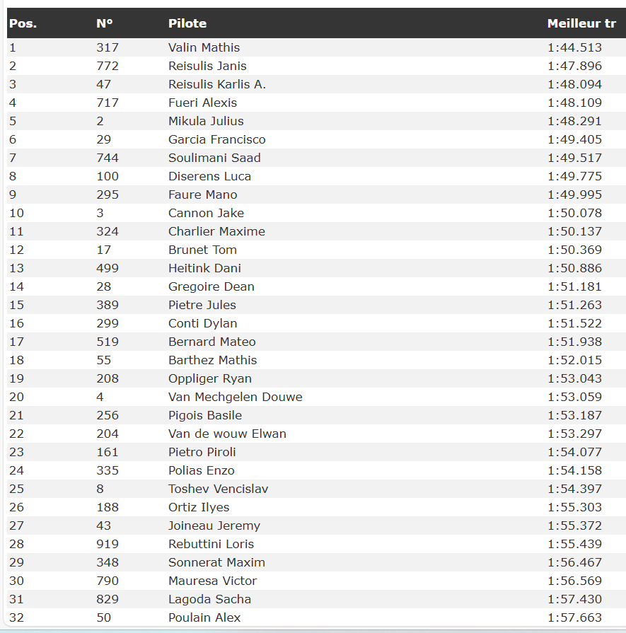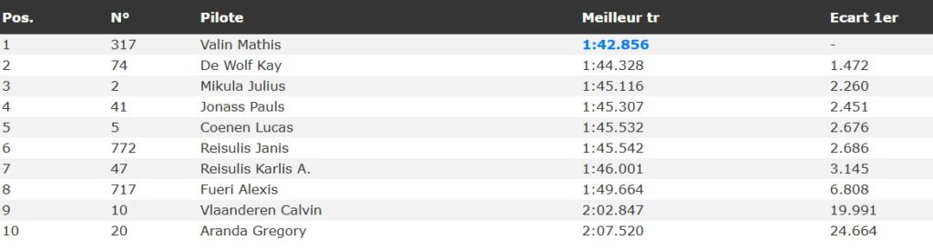 In the overall classification, Valin took the win with a 2-1 scorecard. Reisulis secured second overall via 1-4, and Mikula’s consistent 5-3 finishes earned him the third step of the podium.