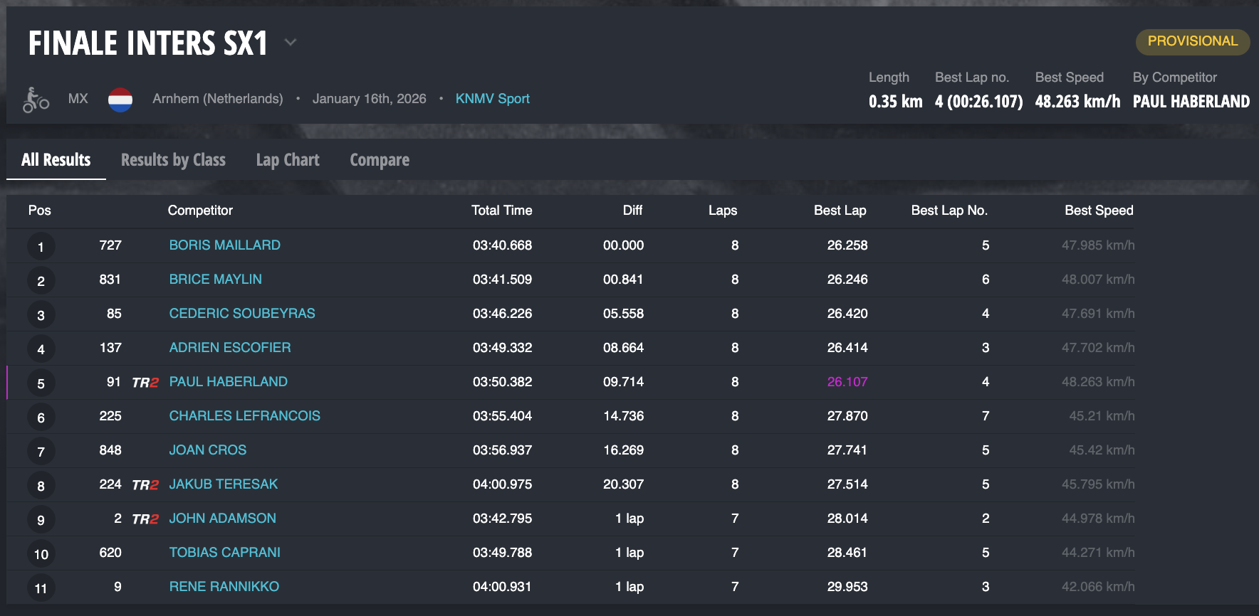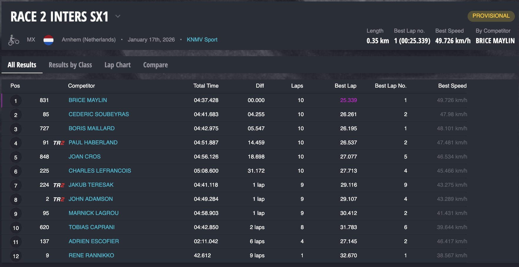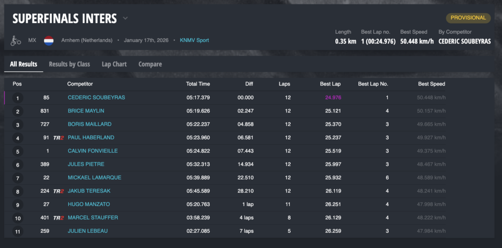 Ya el sábado el triunfo en la Superfinal fue para el francés Soubeyras. Joan Cros era octavo y quinto en las dos mangas de SX1, mientras que Camps ha sido sexto y quinto en una segunda carrera con remontada incluida.