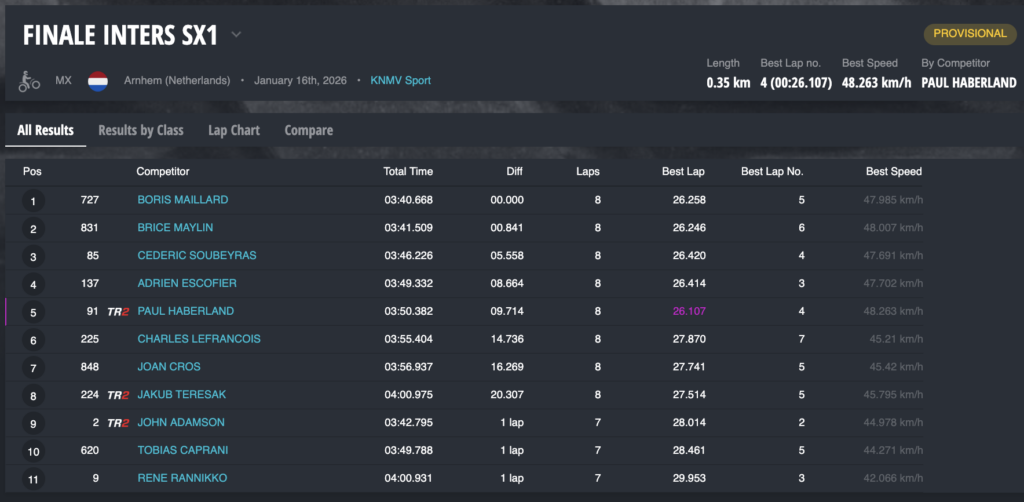 El viernes, Cros cerraba su participación en la séptima posición en una carrera que ganó Boris Maillard, por delante de Brice Maylin y Cederic Soubeyras. En SX2, Camps lograba entrar en el Top 5, aunque estuvo luchando por el podio hasta el último giro, en el que falló acabando quinto.