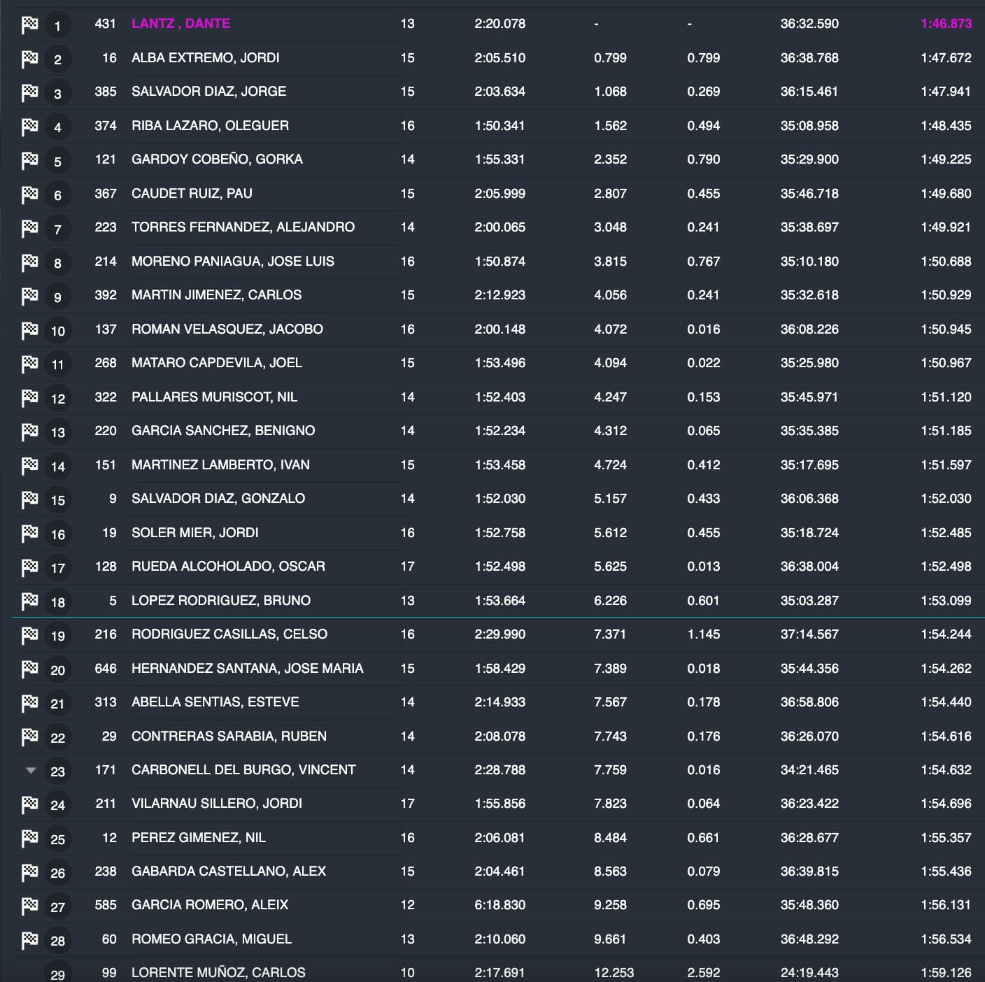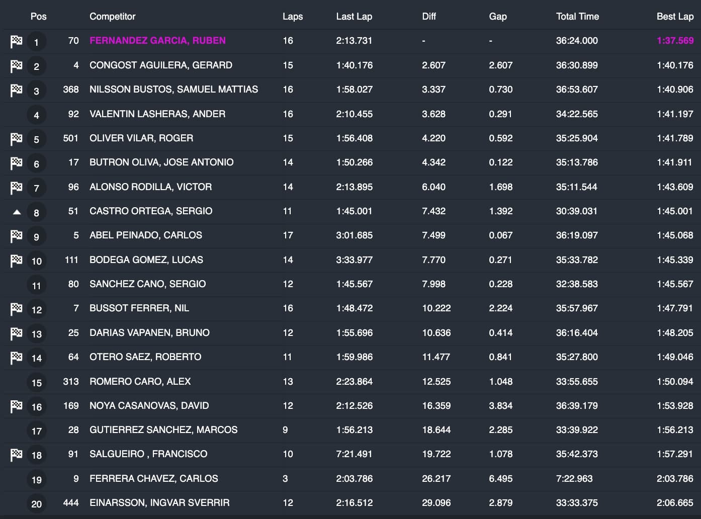 Rubén Fernández ha conseguido el mejor crono en una categoría de MX1 en la que le han seguido Gerard Congost, Samuel Nilsson y Ander Valentín. Roger Oliver ha cerrado el Top 5.