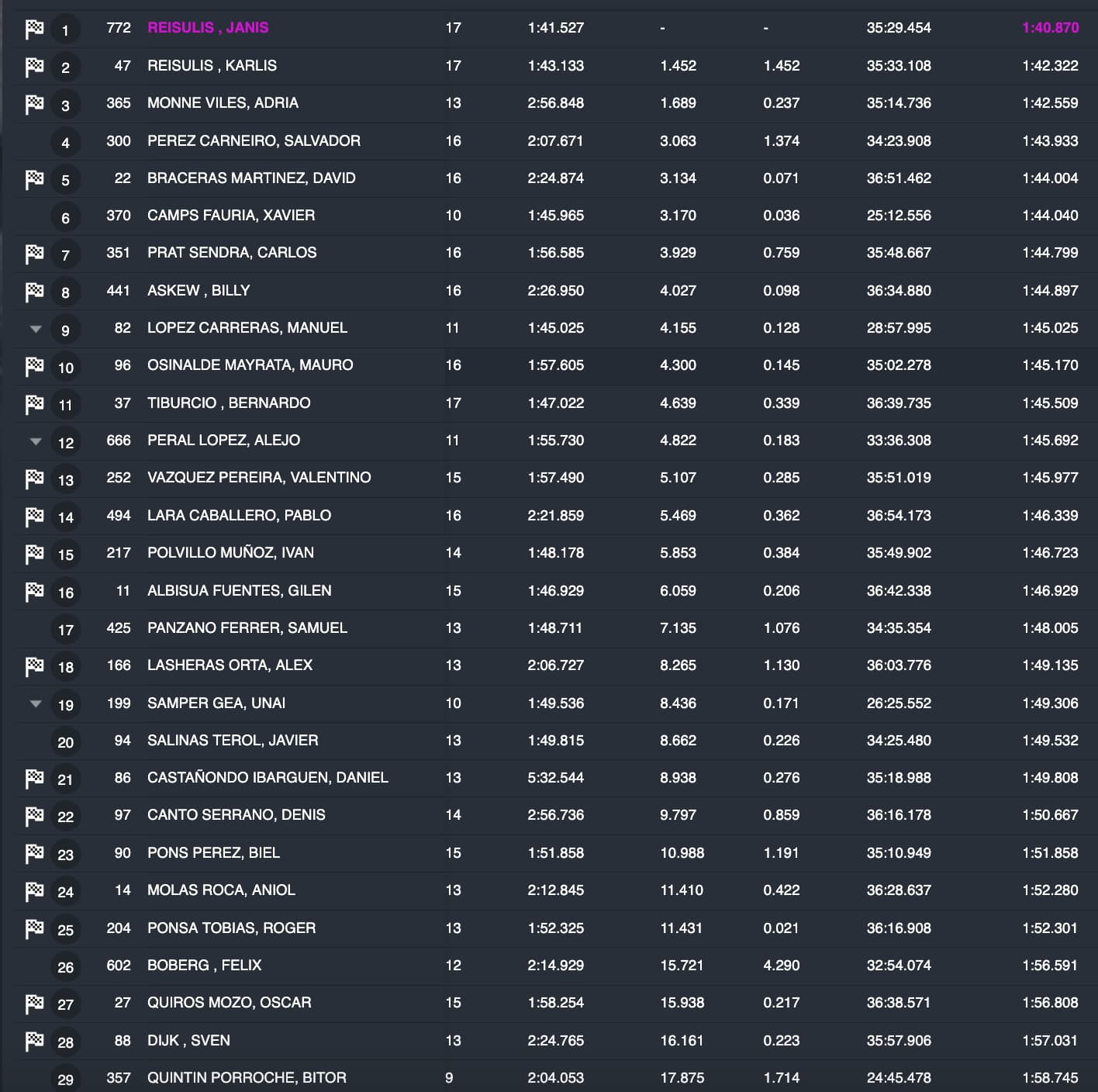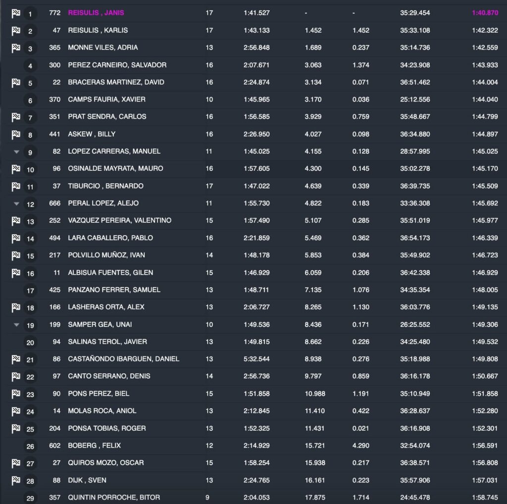 Por el momento los hermanos Reisulis han marcado el ritmo en MX2. Janis a superado en más de un segundo y medio a Karlis, vigente campeón del Europeo de 250cc.