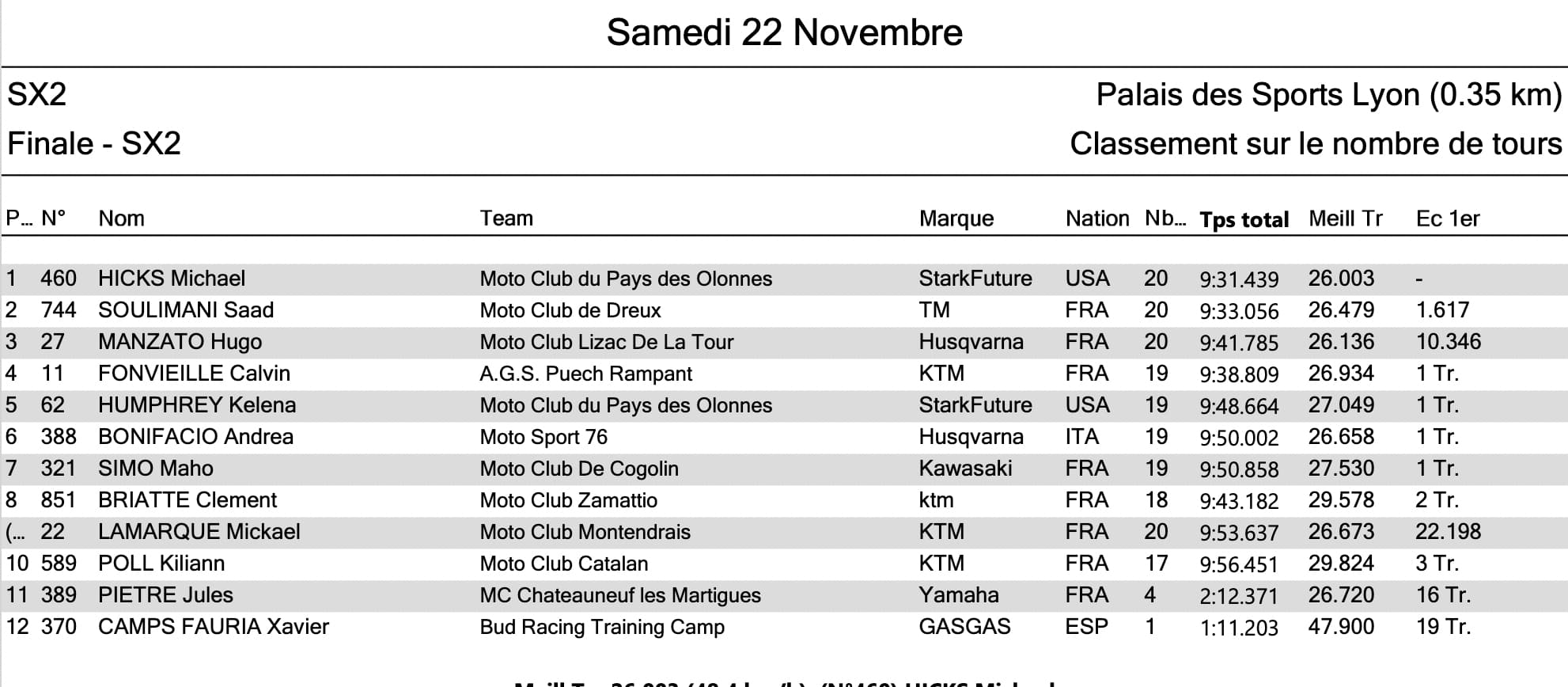 En SX2 reaparecía Xavi Camps. El leridano mostró muy buen ritmo en todas las salidas a pista, aunque le costó entrar en la final del viernes. Una manga en la que comenzó muy atrás, sufrió una caída en la primera vuelta y, pese a ser un circuito en el que costaba mucho adelantar, acabó sexto. No tuvo la misma suerte ayer sábado, puesto que se vio obligado a abandonar en la primera vuelta.