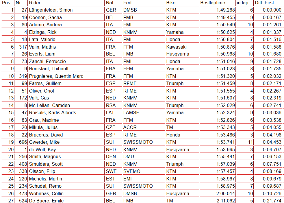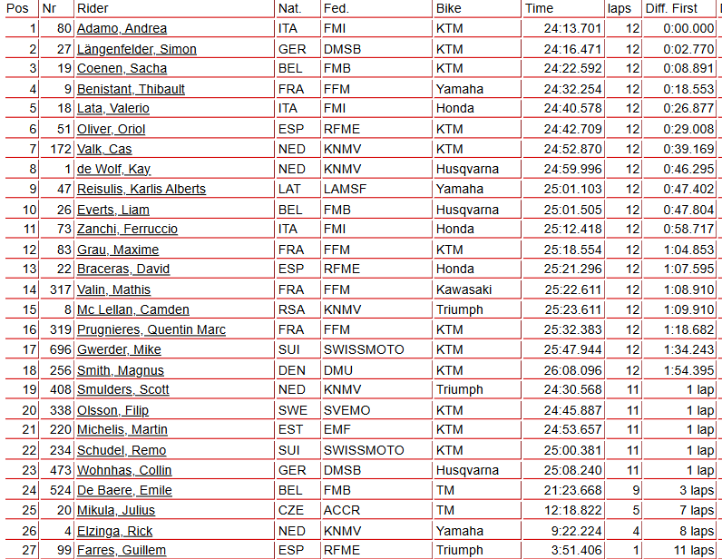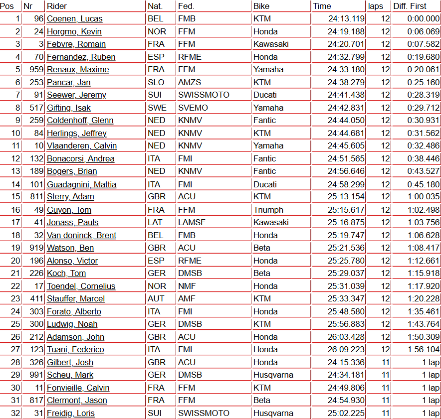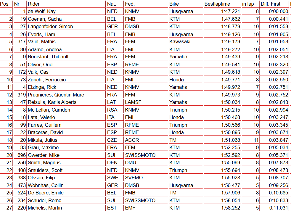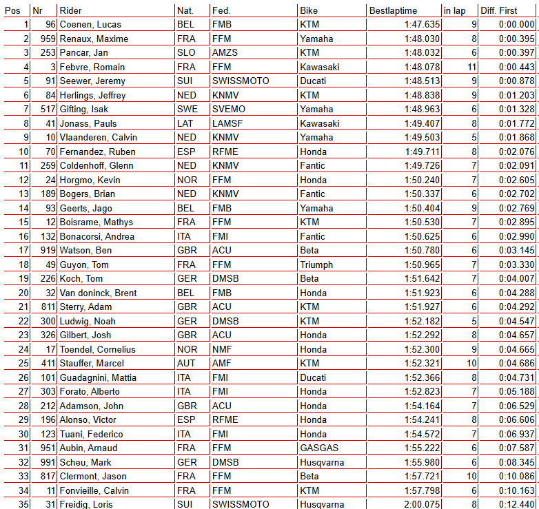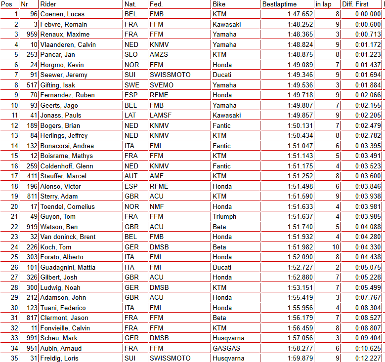 Check all the results sheet from the first day of round nine of the MXGP World Championship in Ernée, France. If you want to know how the action has been going, check our LIVE COVERAGE session for the latest updates.
