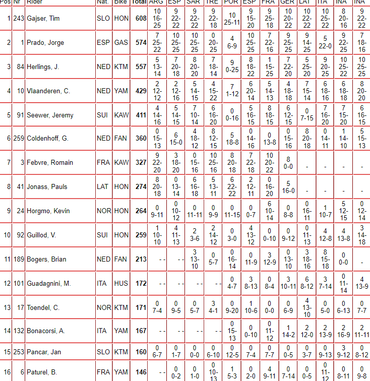 Results Sheet: MXGP of Lombok – Indonesia 2024