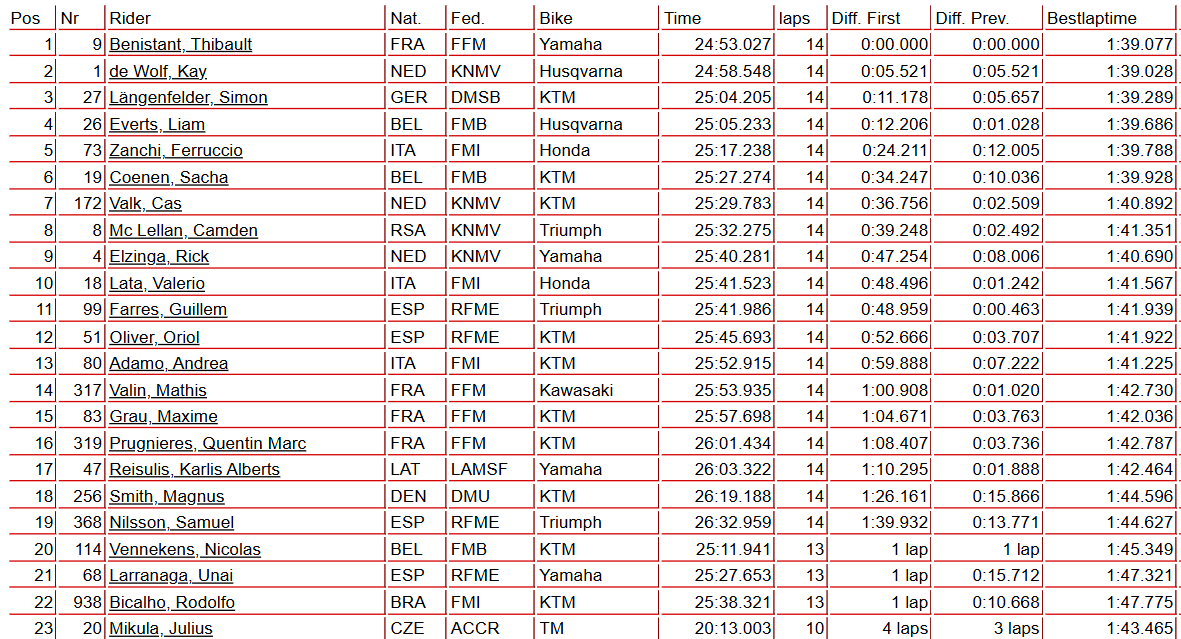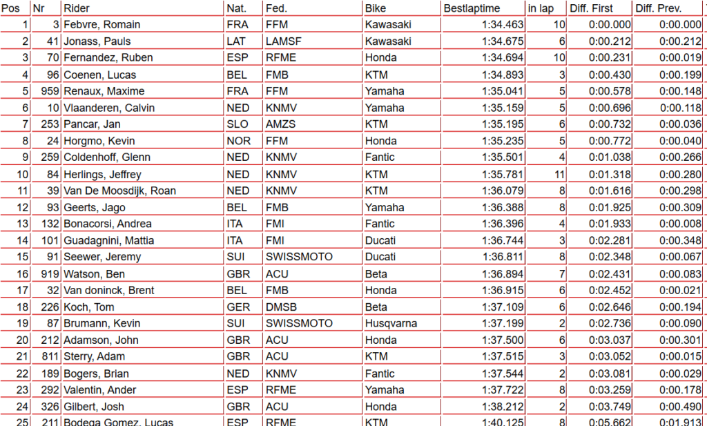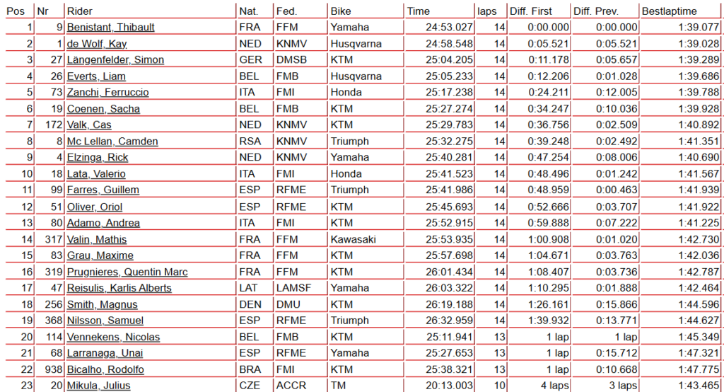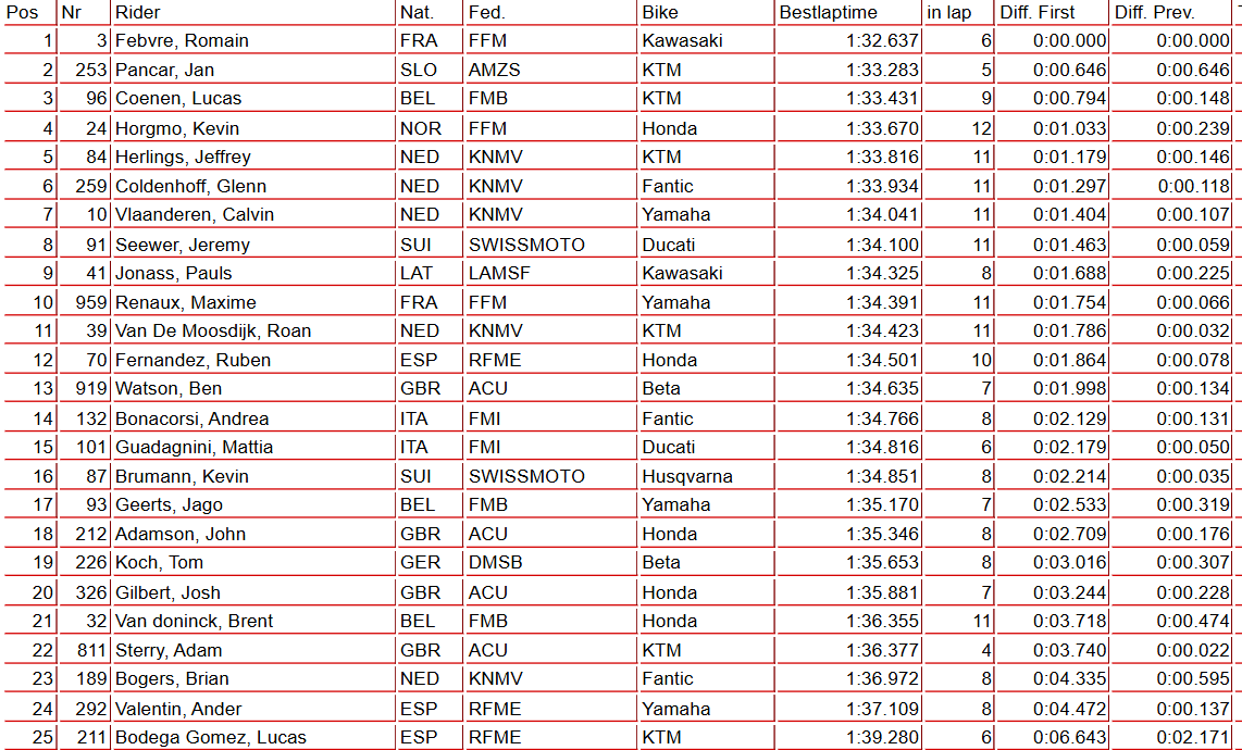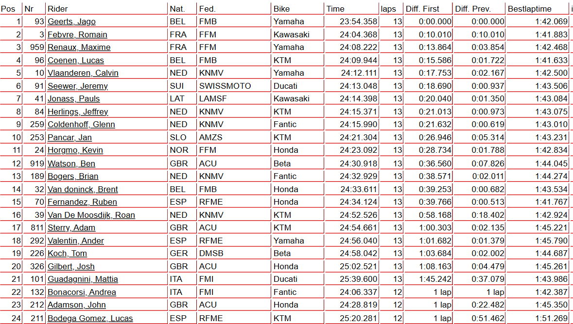 Check all the results sheet from round eight of the MXGP World Championship in Lugo, Spain. If you want to know how the action has been going, check our LIVE COVERAGE session for the latest updates.