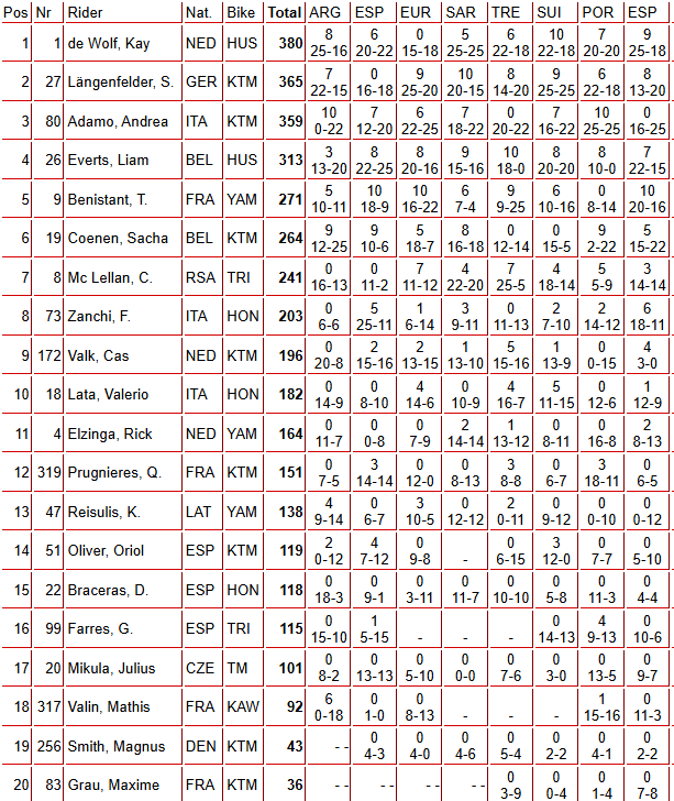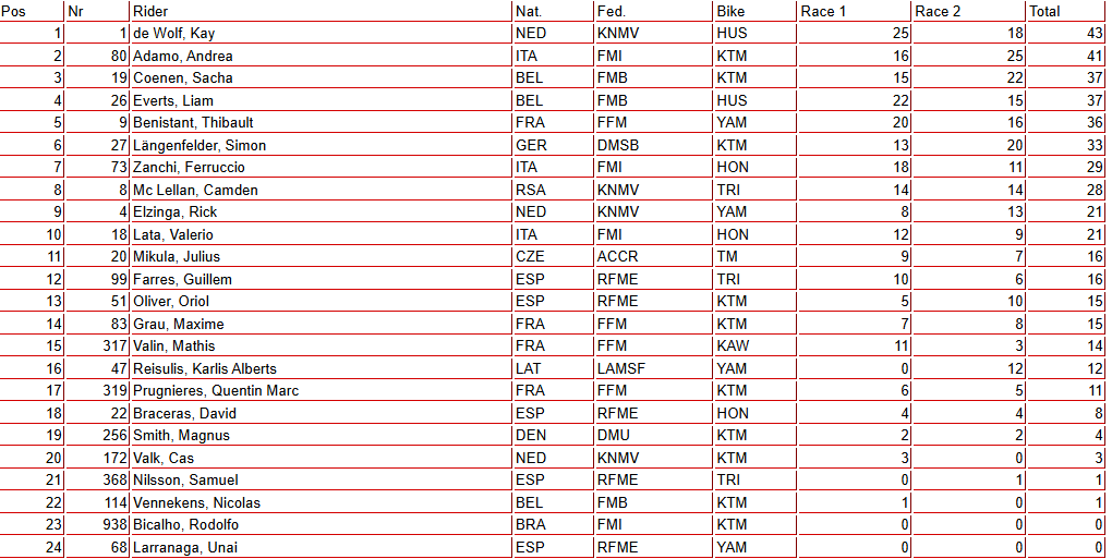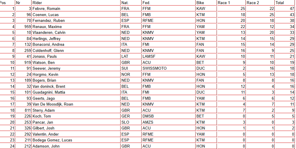 Check all the results sheet from round eight of the MXGP World Championship in Lugo, Spain. If you want to know how the action has been going, check our LIVE COVERAGE session for the latest updates.