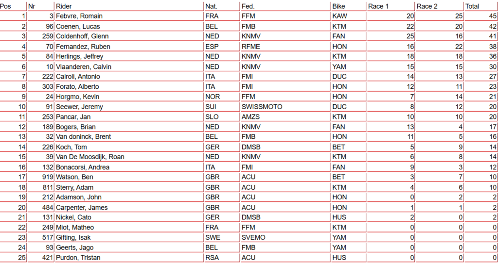 Results Sheet: MXGP of Matterley Basin 2025 | Sunday
