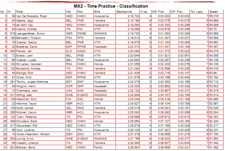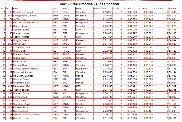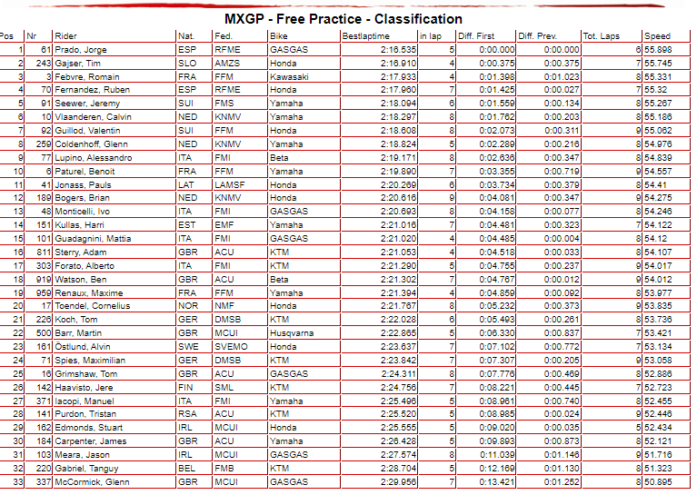 Results Sheet: MXGP of Matterley Basin – Round 19 (Final)