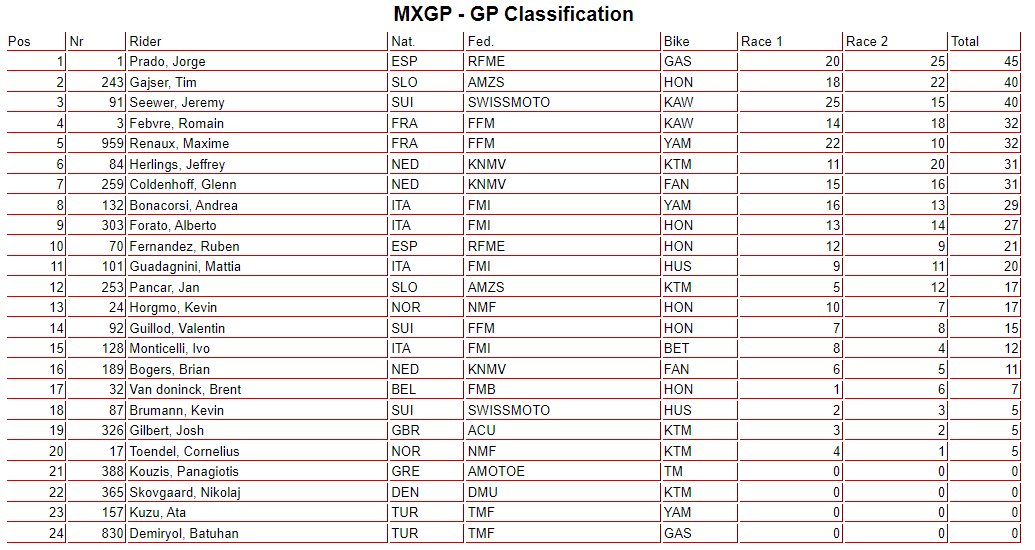 MXGP OVERALL & STANDINGS