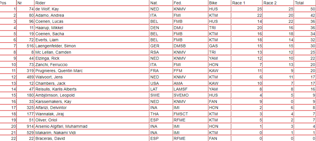 Follow all the results from round eleventh of the MXGP Motocross World Championship in Lombok, Indonesia. Every update will be posted immediately at the end of each session. If you want to know how the action has been going, you could follow us on Threads and Instagram.