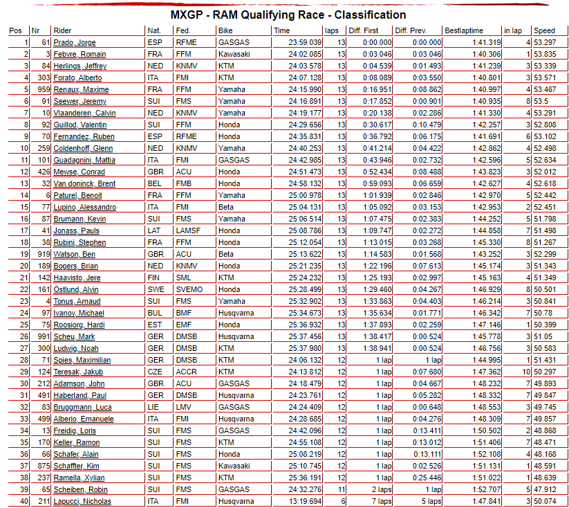 Follow all the results of the third round of the MXGP World Championship in Switzerland. Every update will be posted in chronological order, so scroll down to find the latest results. If you want to know how the action has been going, you could follow us on Twitter and Instagram and check our new-brand session GP Reel with the latest updates.