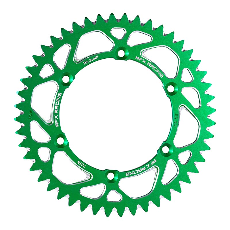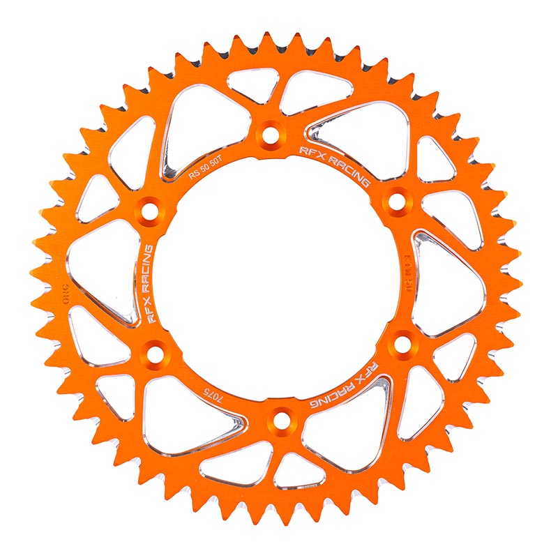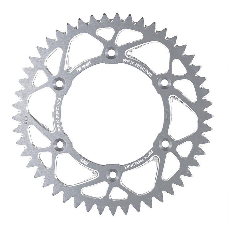 Para que todos los componentes funcionen en armonía, la transmisión debe ser fiable. Las coronas RFX combinan alta resistencia y diseño ligero, ofreciendo soluciones tanto para pilotos profesionales como aficionados. La RFX Pro Series Elite, fabricada en aluminio, destaca por su ligereza, ranuras para evacuar barro y disponibilidad en varios colores. Por su parte, la RFX Race Series, de acero de alta resistencia con tratamiento térmico, prioriza la durabilidad y la resistencia al desgaste, incorporando diseños aligerados en algunos modelos.