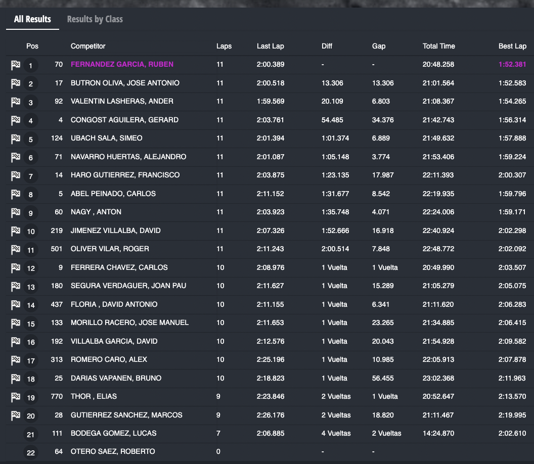 El piloto gallego de Honda HRC, que ya lograba el mejor tiempo en los entrenamientos cronometrados, ha tenido que deshacerse en las primeras vueltas de José Antonio Butrón, que ha salido primero en el circuito de El Barrero. A partir del tercer giro, Fernández ha ido marcando el ritmo hasta cruzar la línea de meta por delante del de Chiclana de la Frontera y del líder del Nacional, Ander Valentín.