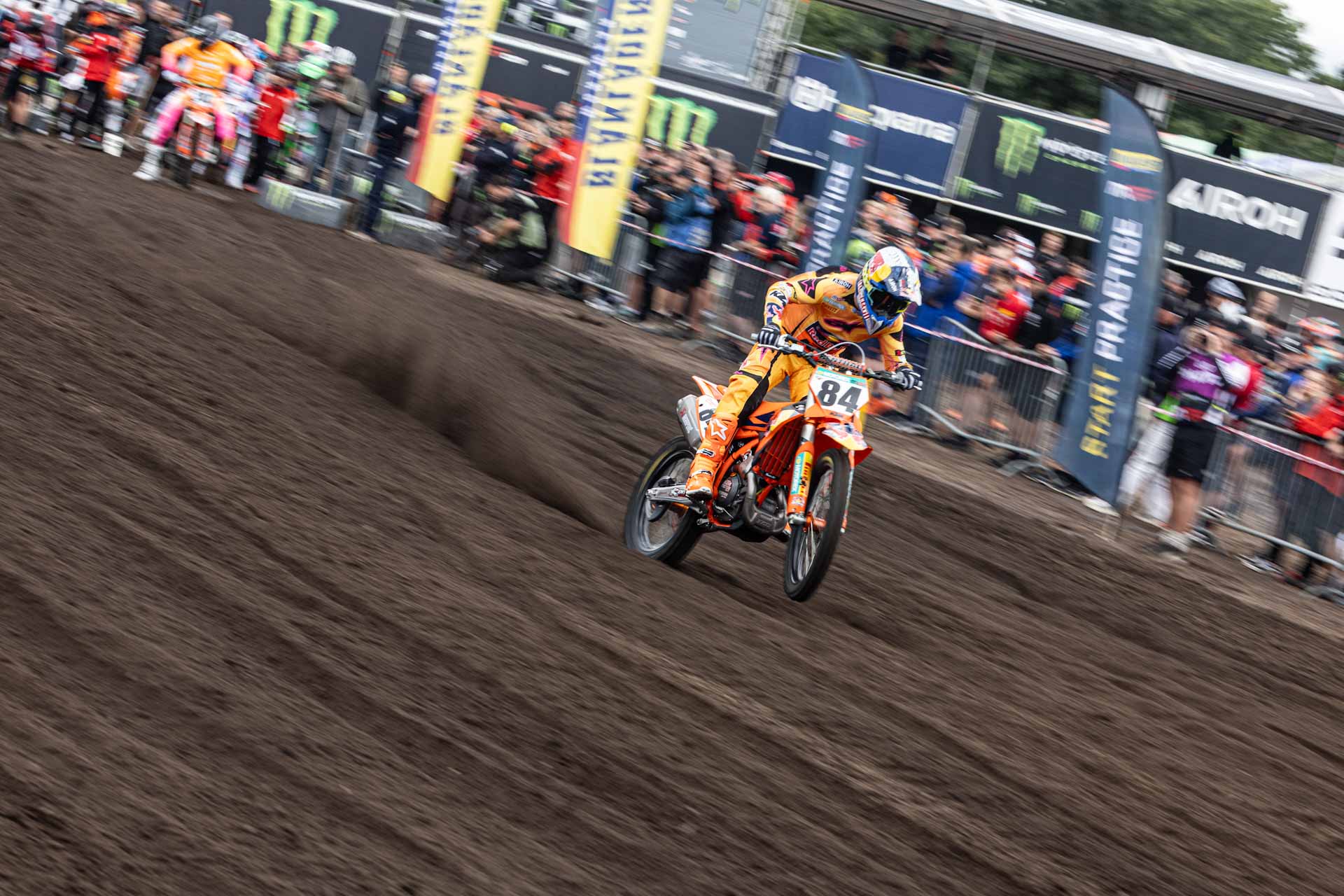 En MX2, Kay de Wolf (Neestan Husqvarna) se llevó su sexta pole del año en un vibrante pulso con Rick Elzinga (Monster Energy Yamaha). Elzinga había arrebatado el primer lugar en los compases finales, pero De Wolf respondió con una vuelta de 1:38.816, siete décimas más veloz, asegurando así el mejor puesto de salida. Sacha Coenen (Red Bull KTM) completó el top 3, a más de un segundo.