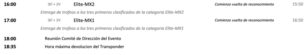 Debido a las amenazas de fuertes lluvias para el día domingo, RFME ha tomado la decisión de adelantar toda la actividad para este sábado 12 de marzo con el objetivo de evitar la suspensión de la prueba en caso de que el trazado de Cerro Negro quede en intransitables condiciones. Ya que toda la actividad se llevará a cabo en un solo día, por cuestiones de tiempo se han eliminado las mangas de clasificación y en su lugar los resultados de las sesiones cronómetradas serán tenidos en cuenta a la hora de elegir parrilla de salida.