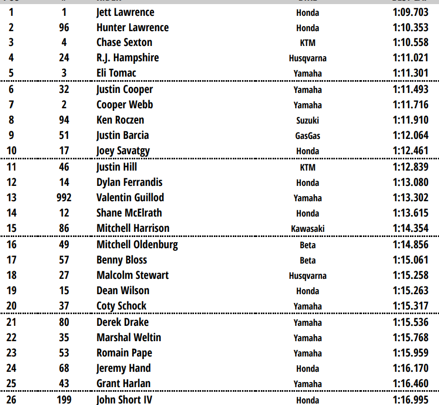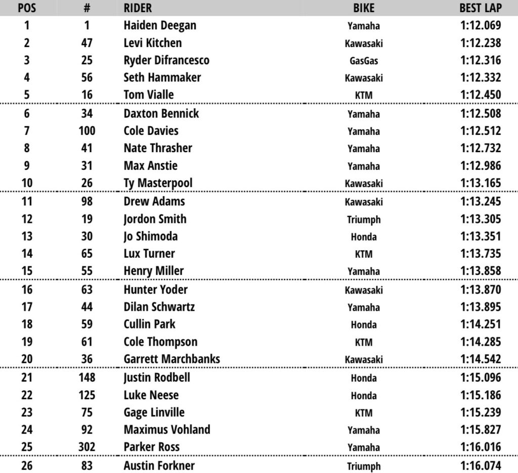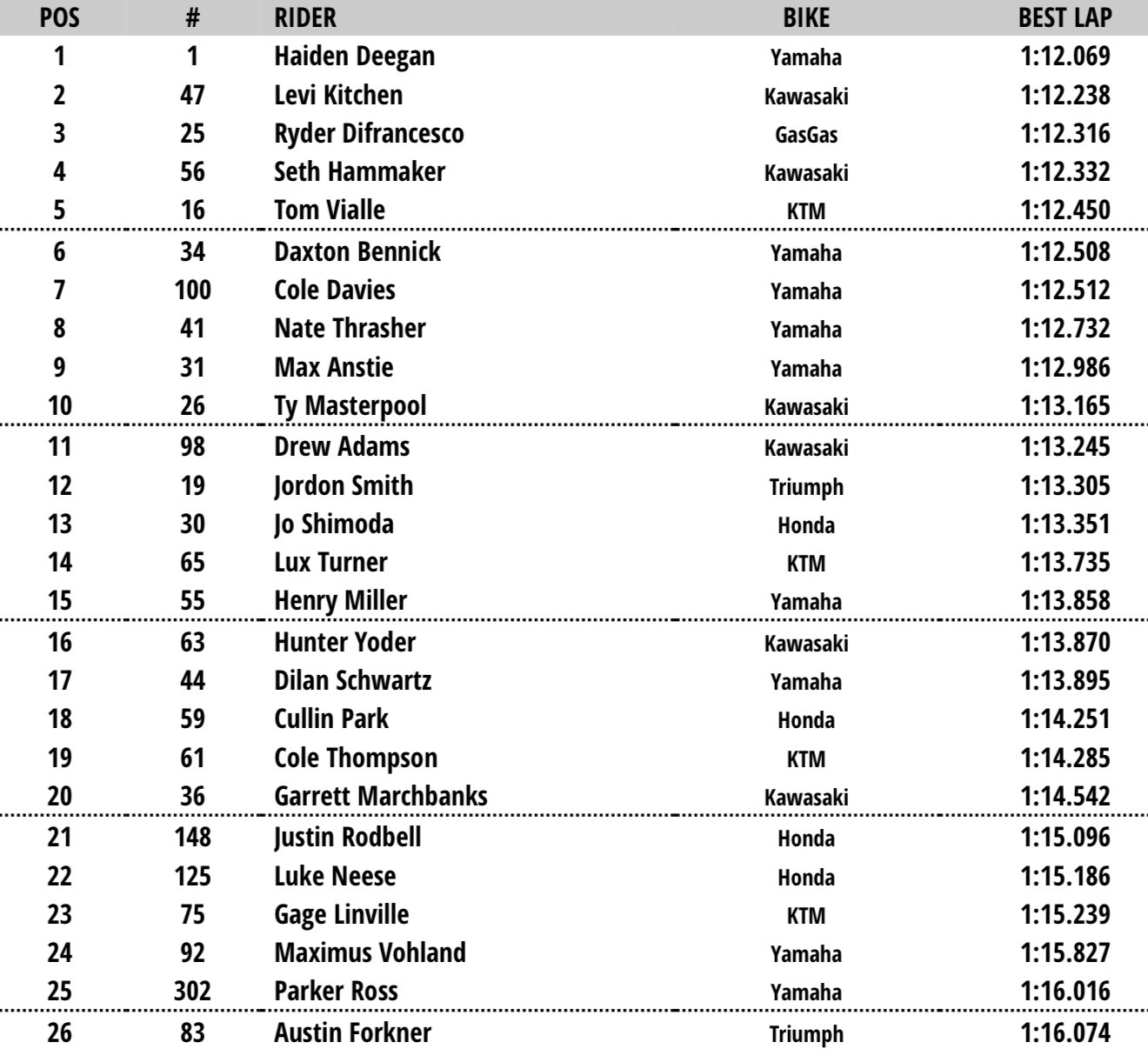 The second 250SMX qualifying session also delivered drama when Max Vohland tangled with Levi Kitchen off the start. While Kitchen continued without issue, Vohland needed assistance and was taken back to the pits aboard the Alpinestars Medic cart.