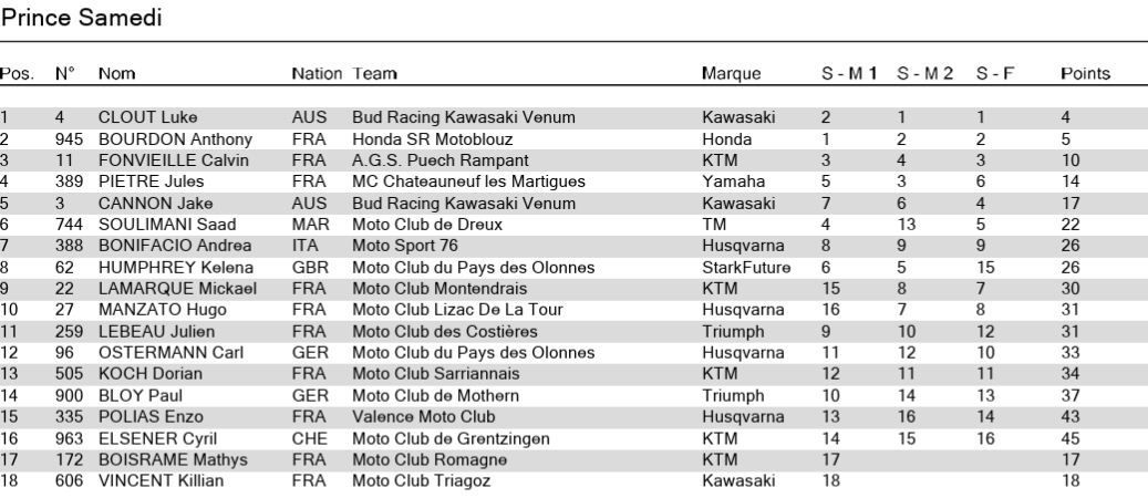 Anthony Bourdon (Motoblouz SR) abrió la velada ganando la primera Sprint, pero en las dos carreras restantes tuvo que lidiar con salidas complicadas que le impidieron presentar batalla directa al australiano. Aun así, volvió a demostrar una gran velocidad, abriéndose paso desde atrás hasta asegurar la segunda posición en ambas carreras.