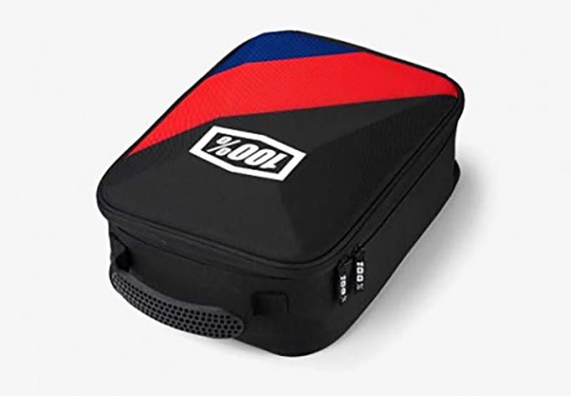 Las gafas son un elemento de gran importancia para el MX, así que guardarlas a buen recaudo en cada viaje es primordial para mantenerlas siempre en óptimas condiciones, además de llevar repuestos y los tirables en un mismo sitio, lo que te puede evitar algún que otro quebradero de cabeza. Una bolsa muy funcional para ello es la de 100%, con varios diseños a tu disposición: