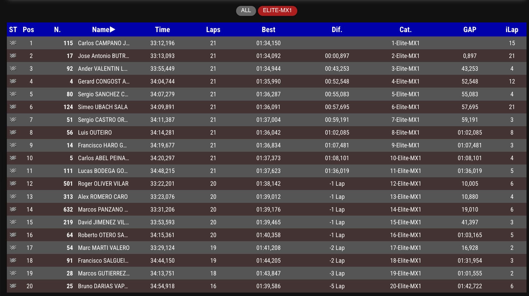 En la segunda todo ha cambiado. Campano volvía a salir como un misil, pero en los primeros instantes se iba al suelo, se veía rebasado por Butrón y perdía mucho tiempo en reincorporarse a la carrera. Además, dos nuevas caídas le obligaban a abandonar con dolores en varias zonas de su cuerpo.