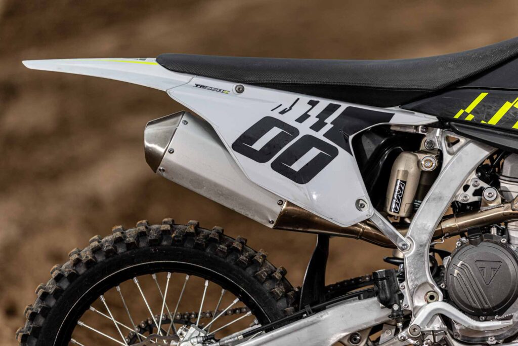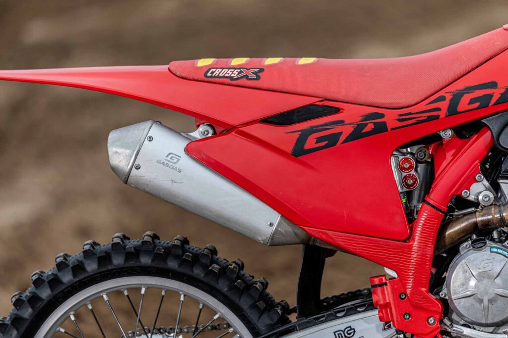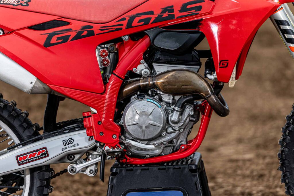The former Spanish brand was acquired by Pierer Mobility Group and began sharing a platform with KTM in 2021. That year, the MC 250F got the same updated chassis as the KTM, with a shortened shock turret, thinner-walled chrome steel tube thicknesses and new shock linkage. The MC 250F benefits from a class-leading chrome-plated steel chassis, a powerful high-revving engine and the highest quality clutch with a CNC-machined steel basket and the primary gear integrated into the rear of the basket. The GasGas is equipped with the same engine, chassis, subframe, swingarm, braided steel hoses, Pankl transmission and new stock tie rods as its orange and white relatives. However, GasGas maintains its own identity with some modifications adopted to help reduce price and fine-tune power and handling, giving it a unique character with a smoother suspension valve timing than the KTM.