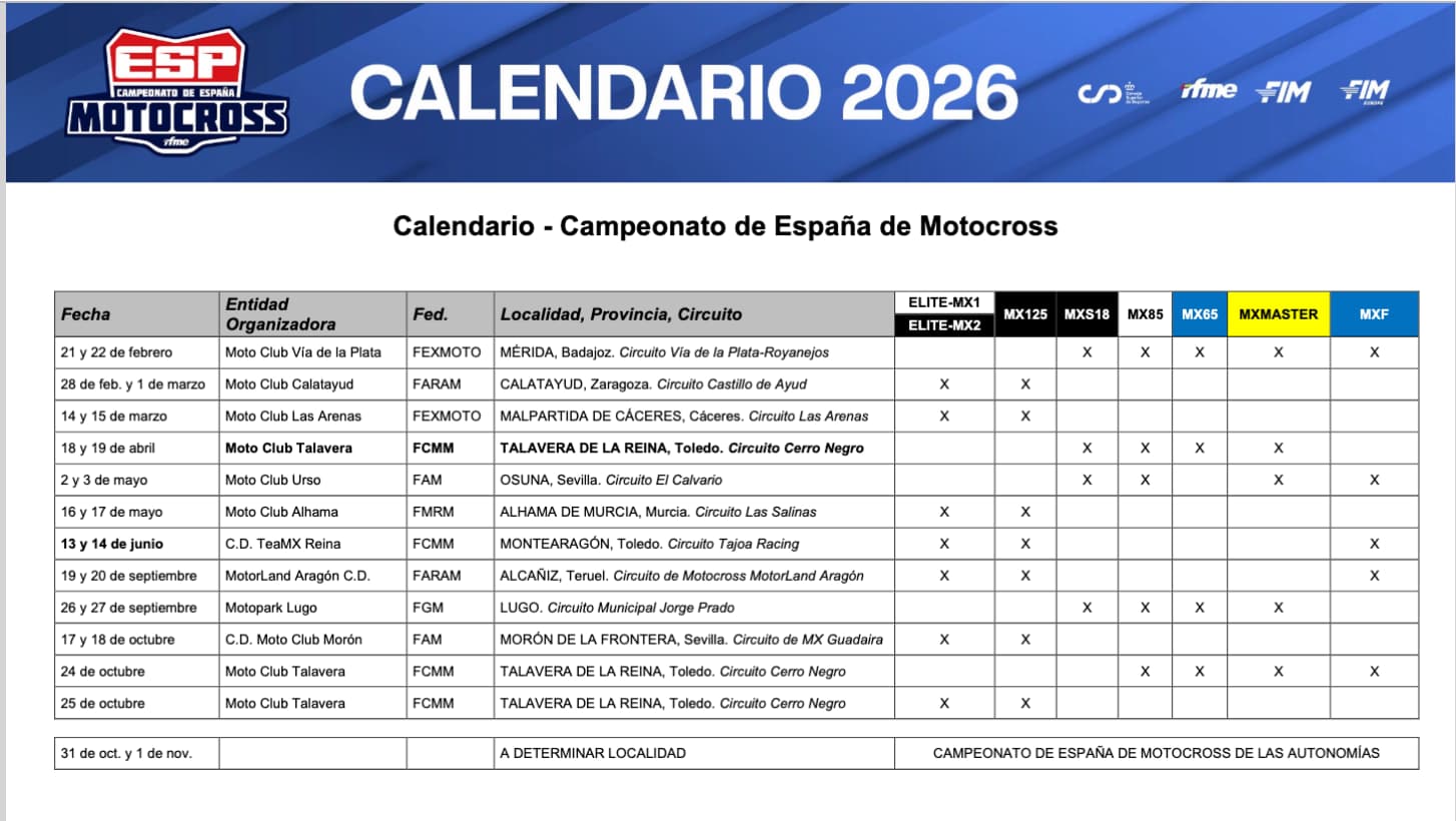 Así queda el Nacional, todavía falta por esclarecer dónde se disputa el Motocross de las Autonomías: